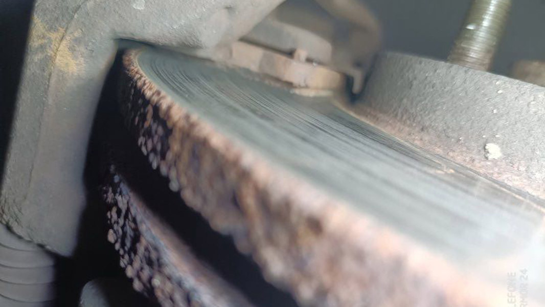 Zatarte linki hamulcowe, wyciek oleju z okolic czujnika poziomu oleju.